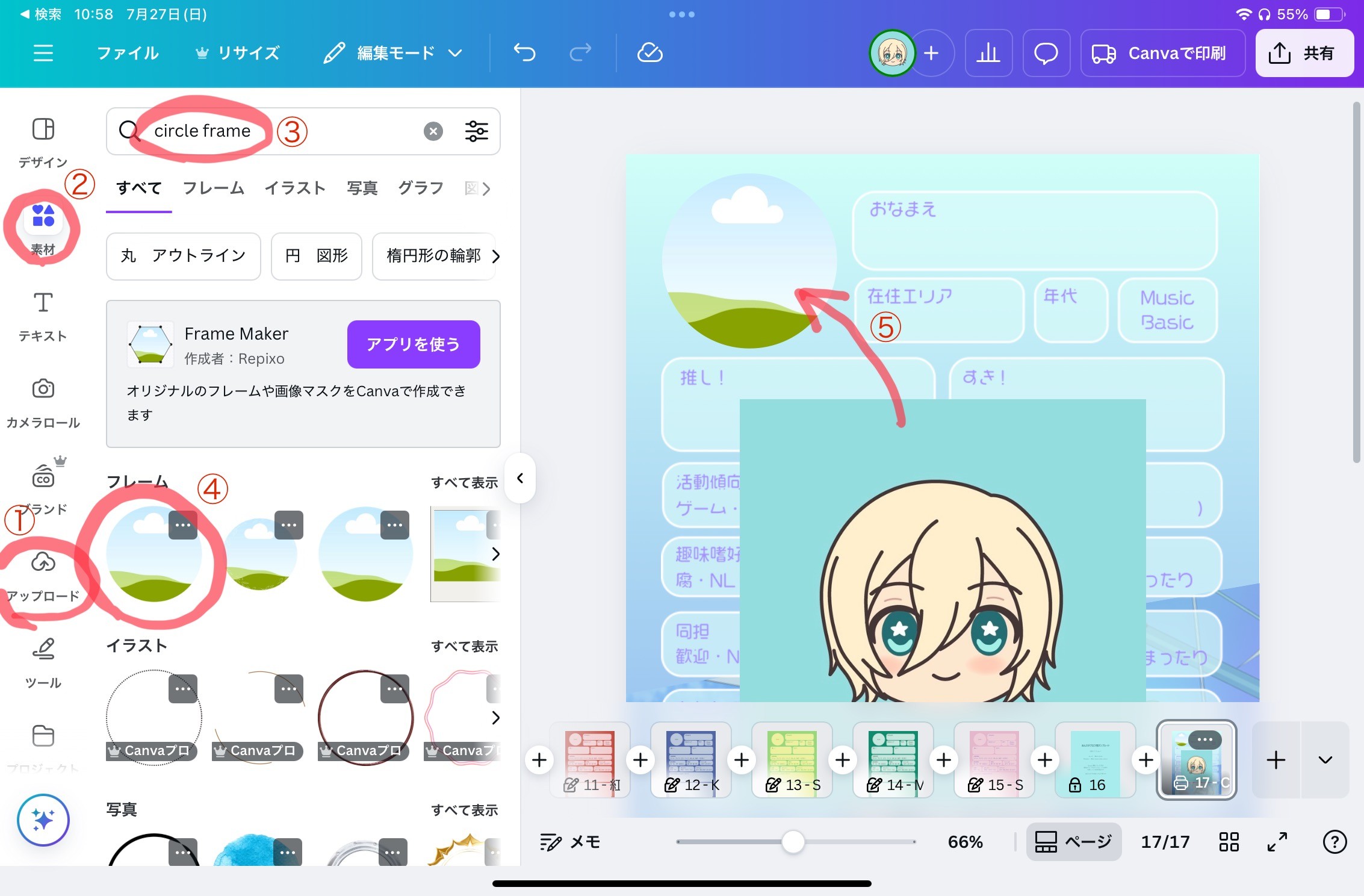 ⑤ アイコン画像をフレームにドラッグ&ドロップで、フレームに収まって完成!